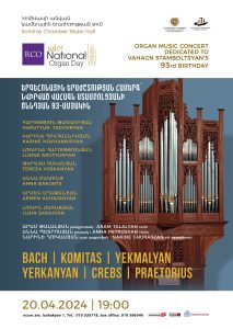 Ապրիլի 20-ին, ժամը 19։00-ին, Կոմիտասի անվան Կամերային երաժշտության տանը կայացավ երգեհոնային երաժշտության համերգ, որի ընթացքում [...]