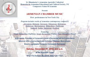 Դեկտեմբերի 21-ին Նյու Յորքի Սբ․Գրիգոր Լուսավորիչ Մայր եկեղեցում տեղի ունեցավ դասական երաժշտության համերգ։ Օրվա հանդիսավարն [...]