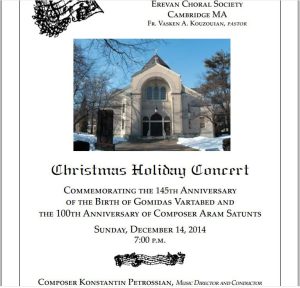 Սուրբ Ծննդյան տոներին ընդառաջ, դեկտեմբերի 14-ին Բոստոնի Սուրբ Երրորդություն Հայկական Առաքելական Եկեղեցում կկայանա մեծ համերգ: [...]