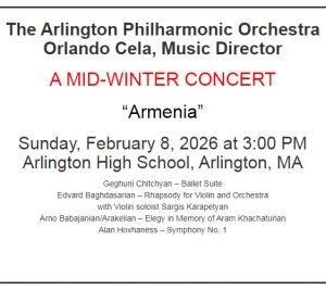 8 февраля в Арлингтоне, штат Массачусетс, США, состоялся концерт произведений армянских композиторов. В программу вошли: [...]