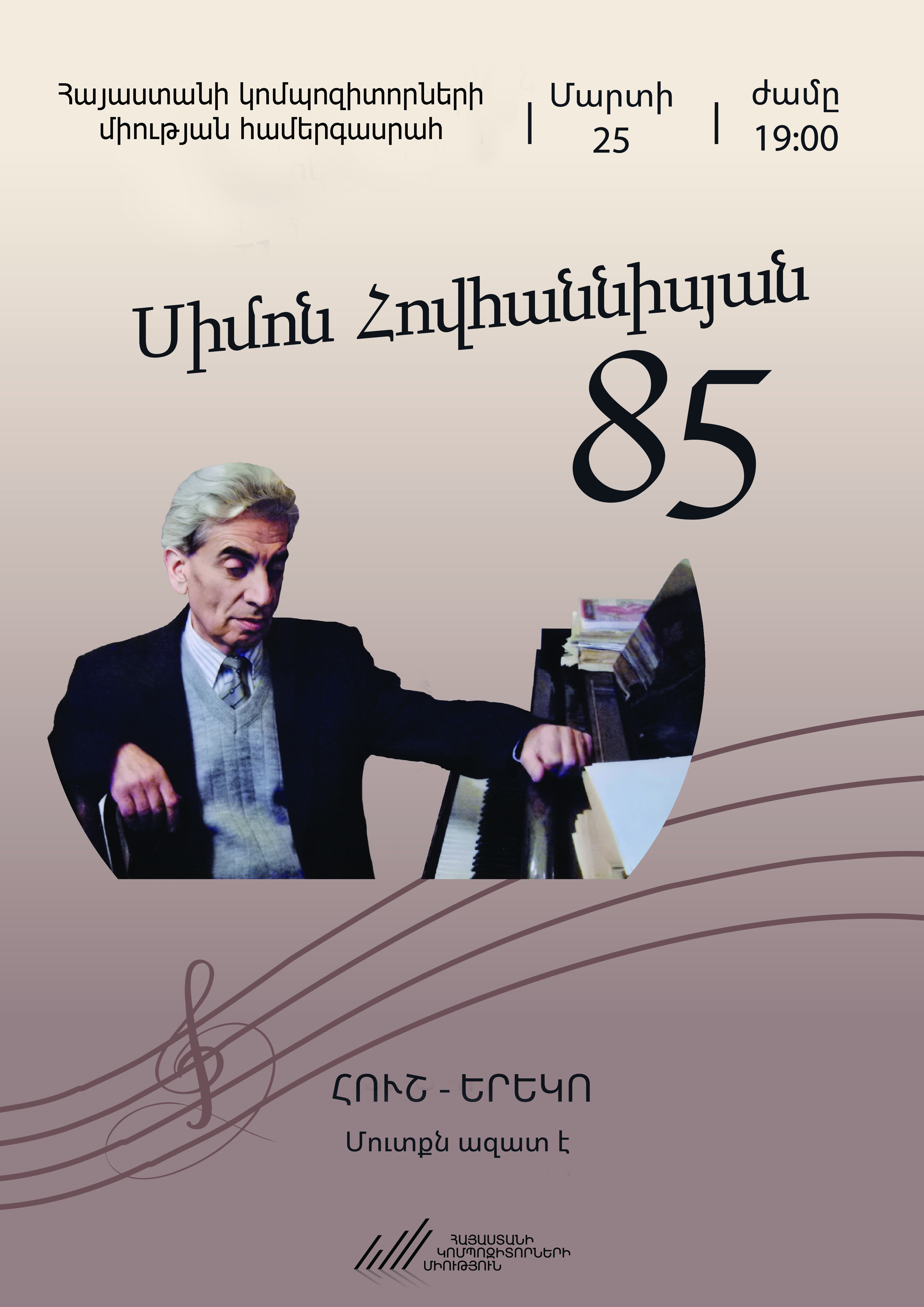 Մարտի 25-ին, ժամը 19:00-ին, ՀԿՄ համերգասրահում կայացավ հուշ-համերգ՝ նվիրված Մովսես Խորենացու մեդալակիր, ՀՀ մշակույթի նախարարության մեդալակիր, կոմպոզիտոր Սիմոն Հովհաննիսյանի 85-ամյակին: