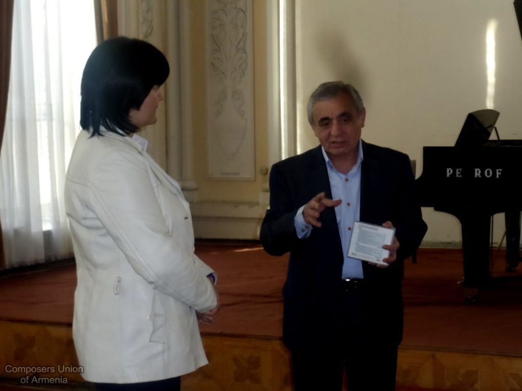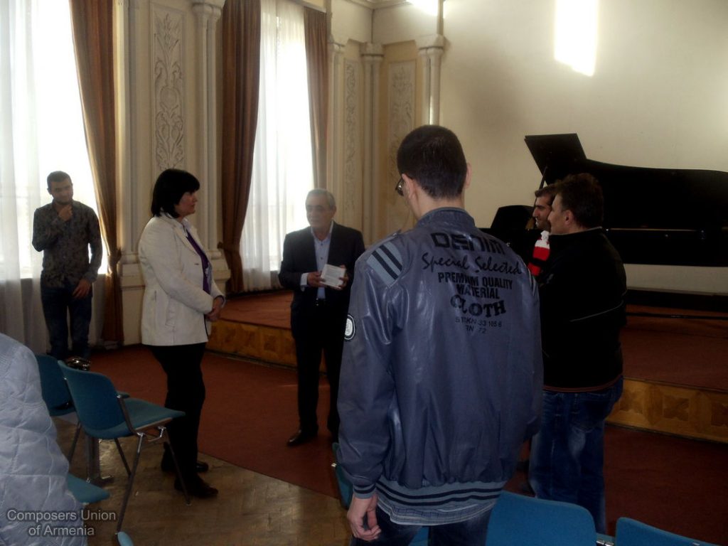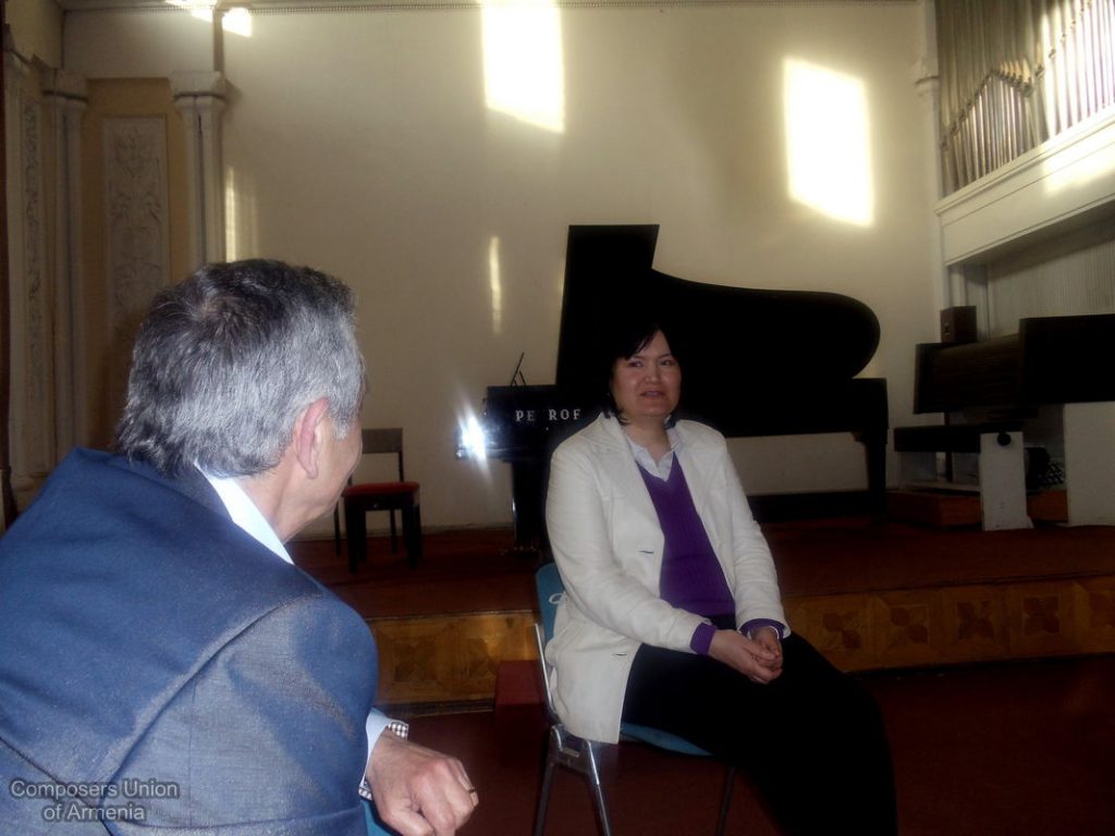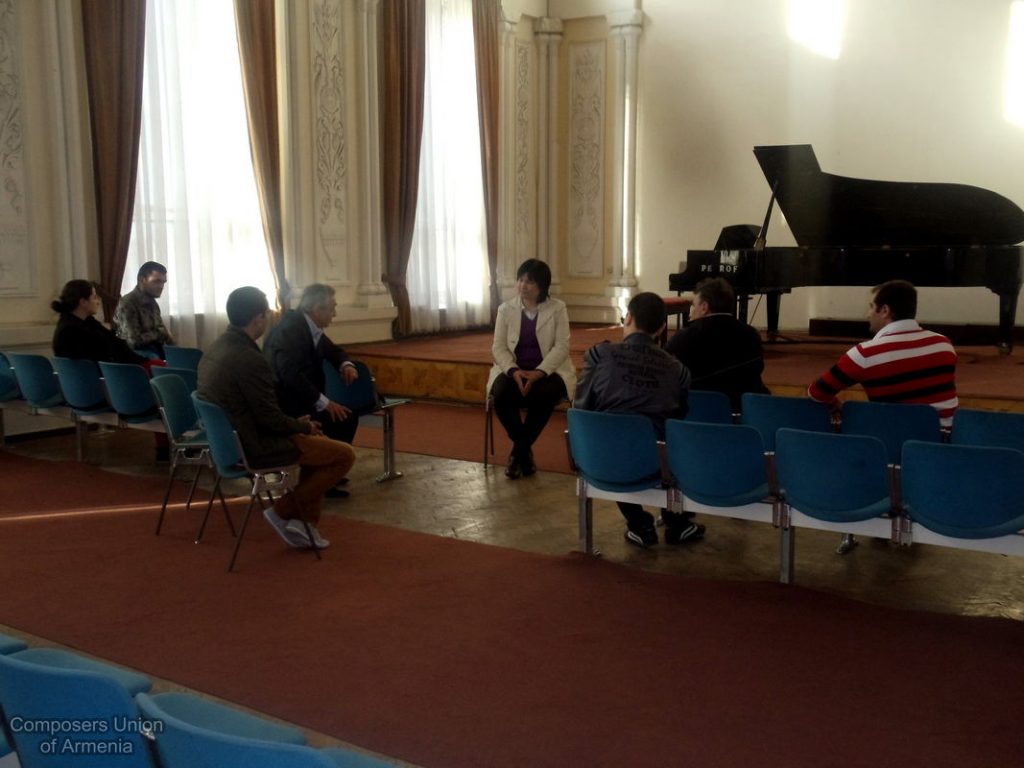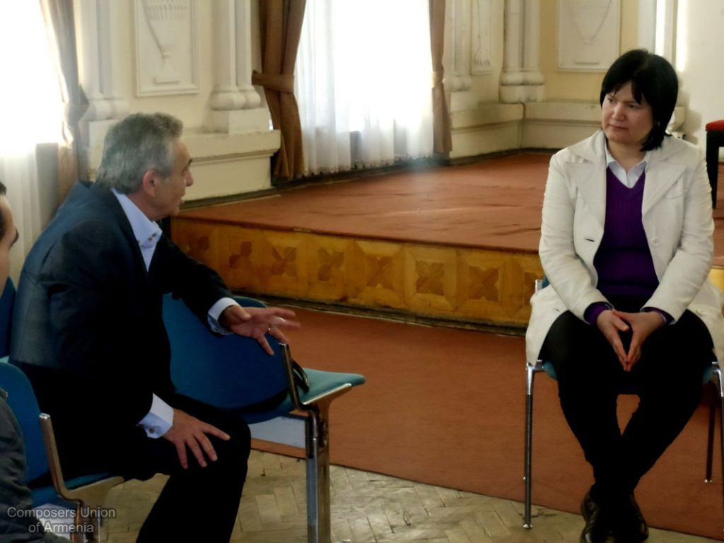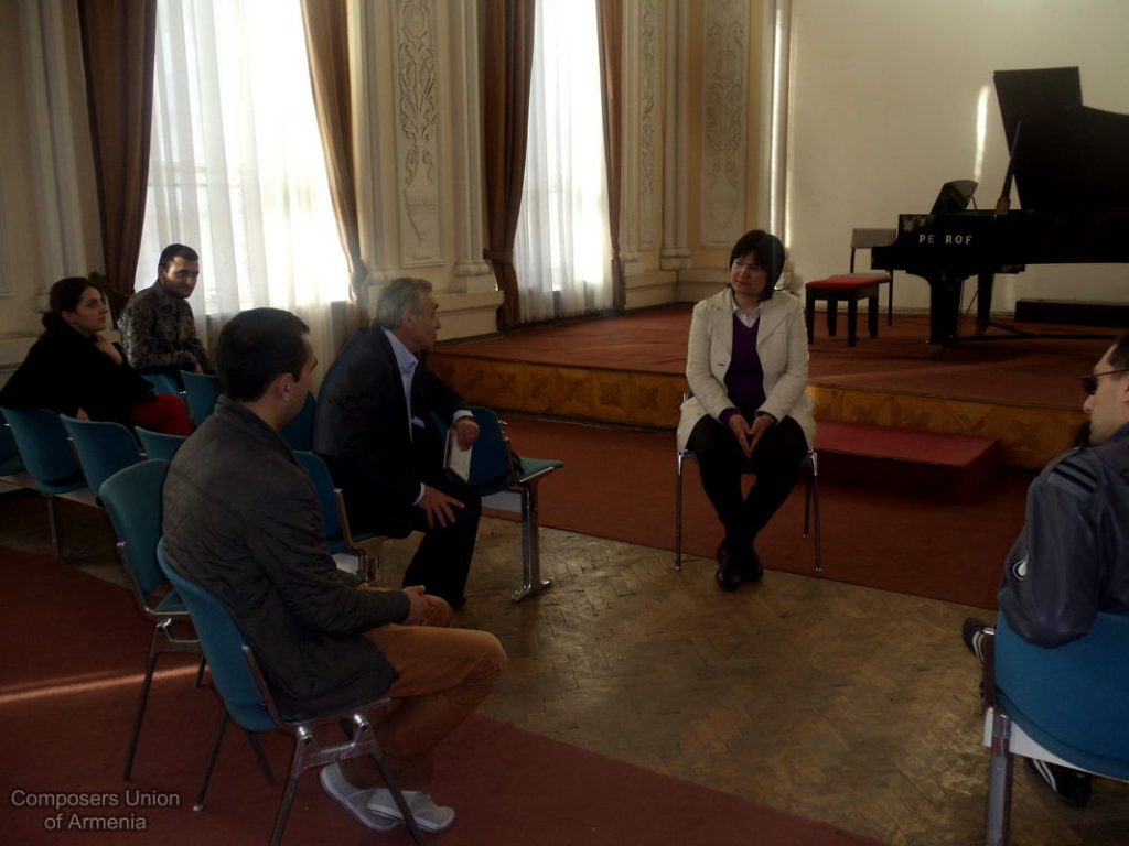 Եվ ահա, հաջորդ օրը՝ ապրիլի 12-ին, Մարալ Յակշիևային ընդունեց Հայաստանի Կոմպոզիտորների Միության նախագահ Արամ Սաթյանը: Միության դահլիճում անցած հանդիպման ընթացքում ներկա էին նաև երիտասարդ կոմպոզիտորներ: Հանդիպոմ-զրույցի ընթացքում քննարկվեցին մի շարք կազմակերպչական հարցեր, քննարկվեցին տարբերակներ՝ կապված հայ-ռուս-թուրքմեն կոմպոզիտորական արվեստի էլ ավելի մերձեցման ու ամրապնդման գործում: Հանդիպման վերջում երիտասարդ կոմպոզիտոր Դավիթ Բալասանյանը ներկայացրեց իր գրած ստեղծագործություններից՝ լսելու Մարալ Յակշիևայի կարծիքն ու խորհուրդները: