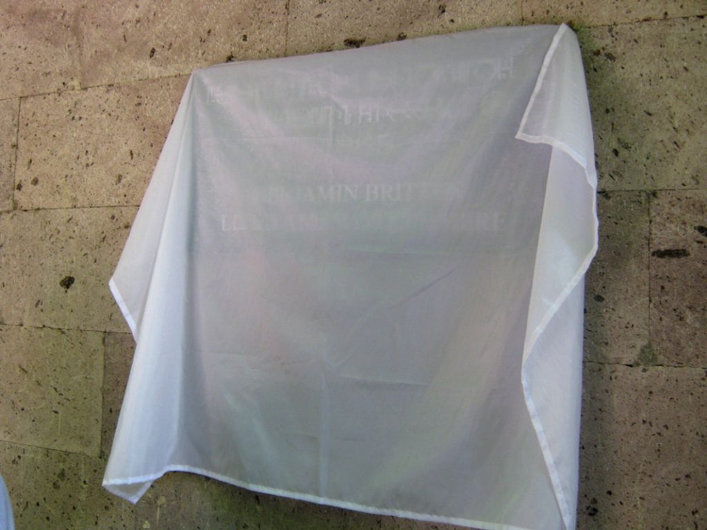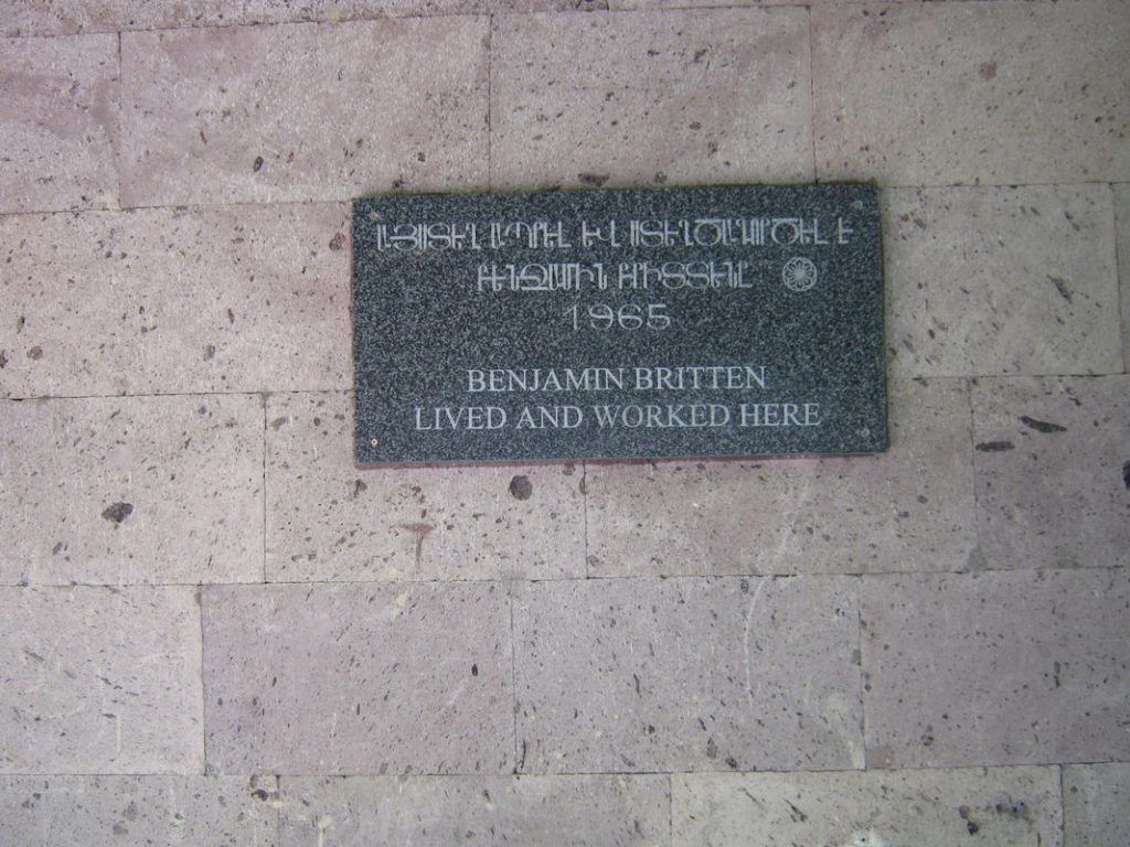 Հուլիսի 3-ին Դիլիջանի Էդվարդ Միրզոյանի անվան կոմպոզիտորների ստեղծագործական տան No 13 քոթեջի պատին փակցվեց մեծանուն կոմպոզիտոր Բենջամին Բրիտենի հուշաքարը: Հայաստանի Կոմպոզիտորների Միության և Մեծ Բրիտանիայի դեսպանատան հետ համատեղ կայացած այս նախագծի շրջանակներում Դիլիջան էր ժամանել Մեծ Բրիտանիայի դեսպանատան պատվիրակությունը՝ դեսպան Քեթրին Ջեյն Լիչի գլխավորությամբ: Պաշտոնական բացումը մեկնարկեց ժամը 12:00-ին : Իր խոսքում Միության Նախագահ Արամ Սաթյանը նախ ողջունեց ներկաներին և ապա կարևորեց մեծանուն կոմպոզիտորի քարի բացման անհրաժեշտությունն ու նրա հիշատակը վառ պահելու կարևորությունը: Արամ Սաթյանը հույս հայտնեց, որ ժամանակի ընթացքում այս քոթեջը (և ոչ միայն) կվերանորգվեն հիմնովին ու հիանալի առիթ կլինի ինչպես բրիտանացիների, այնպես էլ բոլորի համար գալ ու բնակվել հենց այս քոթեջում՝ դրանով իսկ զգալով մեծ երաժշտի “ստեղծագործական շունչը”:
