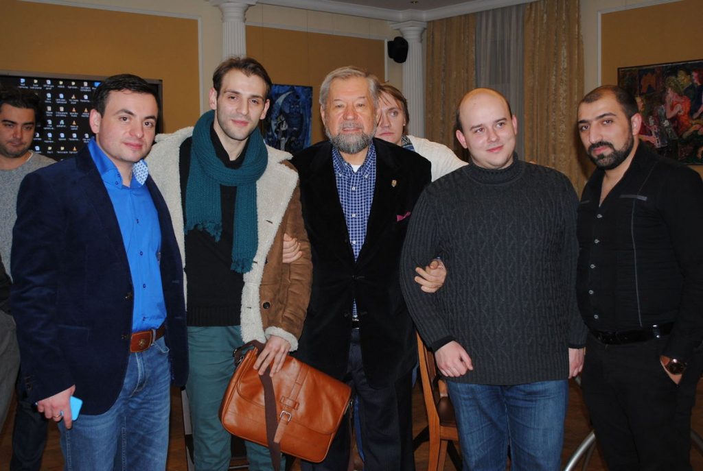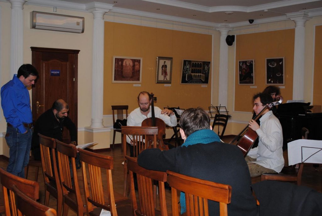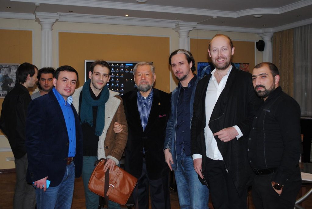 Հայաստանից մեկնեցին ԿՄ Պատասխանատու քարտուղար Սվետլանա Ալեքսանյանը, ԿՄ Ինֆորմացիոն բաժնի ղեկավար Էդմոնդ Մակարյանը, Հայ-ռուսական այս նախագծի հեղինակ Յուրի Գալստյանը: Մոսկվայում միացան երիտասարդ կոմպոզիտոր Քաջիկ Գրիգորյանը, ինչպես նաև Անգլիայից ժամանած Դավիթ Սաթյանը: Հայկական պատիրակությունը հանգրվանեց “Արենա” հյուրանոցում: Հենց դեկտեմբերի 17-ի առավոտյան ժամանած պատվիրակությանը սպասվում էր բավական խիտ գրաֆիկ: Արդեն տեղական ժամանակով 12:00-ին նախատեսված էր փորձ: 3 ժամ անց “Կլոր սեղանի” հյուրերն էին մեր կոմպոզիտորները, որոնք պատասխանում էին լրագորների, երաժշտագետների ու հյուրերի հարցերին: Ավելին, այդ հանդիպմանը եկած ադրբեջանամետ հայ-ադրբեջանցին (հայրը հայ էր, մայրը՝ ադրբեջանցի), իր հարցերով ամեն անգամ փորձում էր ապացուցել, որ մեր կոմպոզիտորական դպրոցը շատ է կառչած հայկական ժողովրդականին, չի ինքնուրույնանում, փոխարեն դրա, մեր պատվիրակությունը սադրանքի չգնաց, ապացուցեց, որ երբ ժողովուրդն իր գենետիկայում ունի և զգում է իր ժողովրդականը, դա ամենևին էլ սխալ չէ: Եվ որ կոնկրետ մեր համար մեծ հպարտություն է, երբ ունկնդիրն հենց առաջին նոտաներից էլ զգում է, որ հեղինակը հայ է: