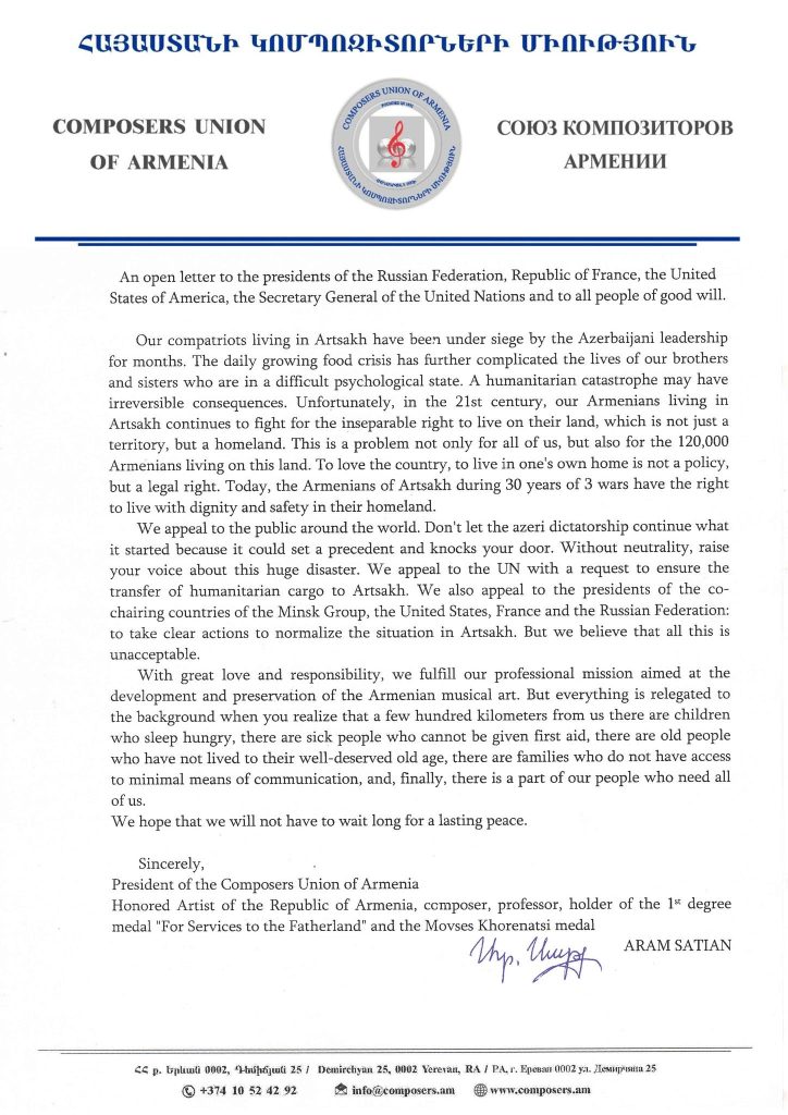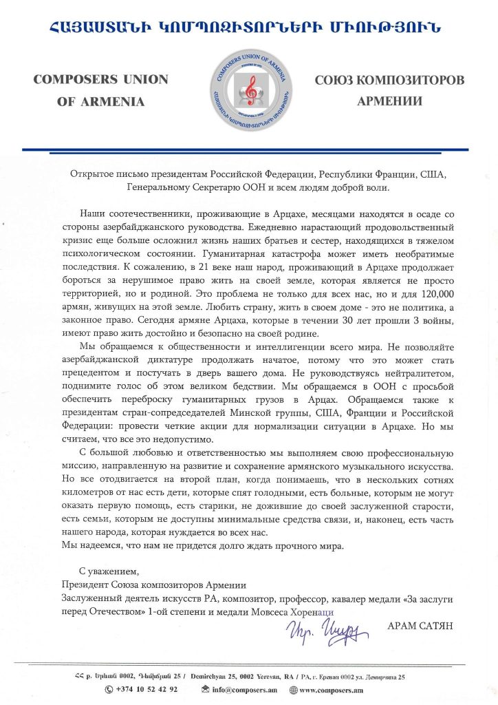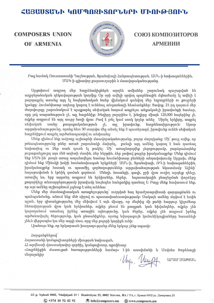 ԲԱՑ ՆԱՄԱԿ ՌՈՒՍԱՍՏԱՆԻ ԴԱՇՆՈՒԹՅԱՆ, ՖՐԱՆՍԻԱՅԻ ՀԱՆՐԱՊԵՏՈՒԹՅԱՆ, ԱՄԵՐԻԿԱՅԻ ՄԻԱՑՅԱԼ ՆԱՀԱՆԳՆԵՐԻ ՆԱԽԱԳԱՀՆԵՐԻՆ, ՄԱԿ-Ի ԳԼԽԱՎՈՐ ՔԱՐՏՈՒՂԱՐԻՆ ԵՎ ՄՏԱՎՈՐԱԿԱՆՈՒԹՅԱՆԸ