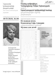 Նոյեմբերի 30-ին, ժամը 16:00-ին, Կոմպոզիտորների միության դահլիճում կայացավ ՀԿՄ անդամ, կոմպոզիտոր Սոֆա Ազնաուրյանի «Առանց ամփոփելու. [...]